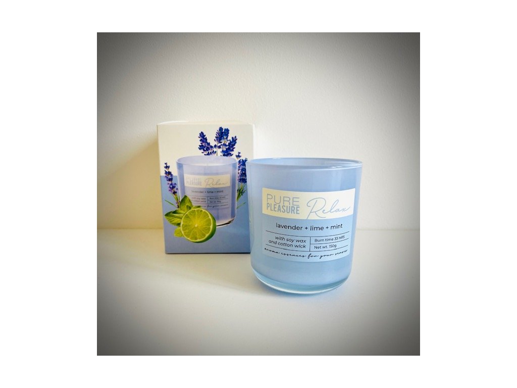 Tato parfémovaná svíčka je vyrobena ze sójového vosku a voní po levanduli, limetce a jemně mátě.